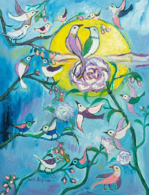 Love is my belief, while art, I think, is a commitment to the beauty of the soul. I regard it as my task in life to deliver the message of love and beauty through my creations. I am grateful to Mr. Chiao Shis-Tai, who encourages my efforts and guides me on the right path, and to my loving and supportive family and friends. They are my guardian angels, giving me strength to go on searching in the world of beauty. I cherish all I have, and constantly try my best to give it expression in my oil paintings. As Kusama Yayoi once said, “I will keep painting until I die”.